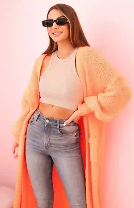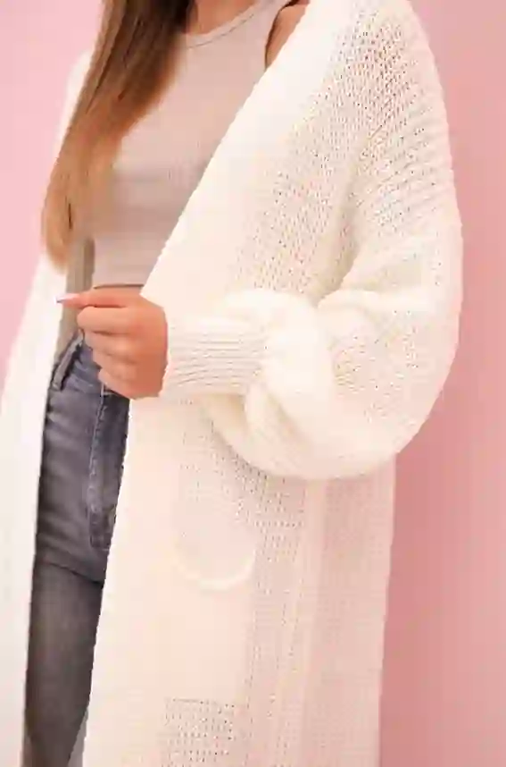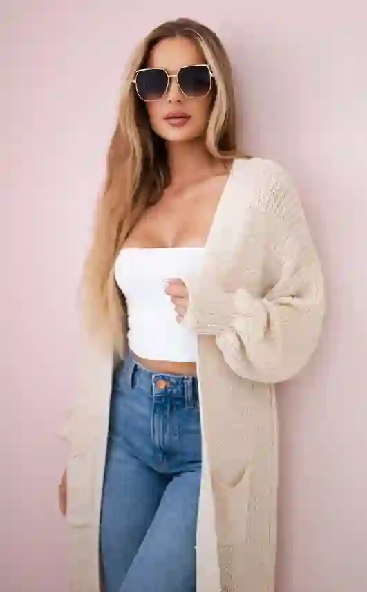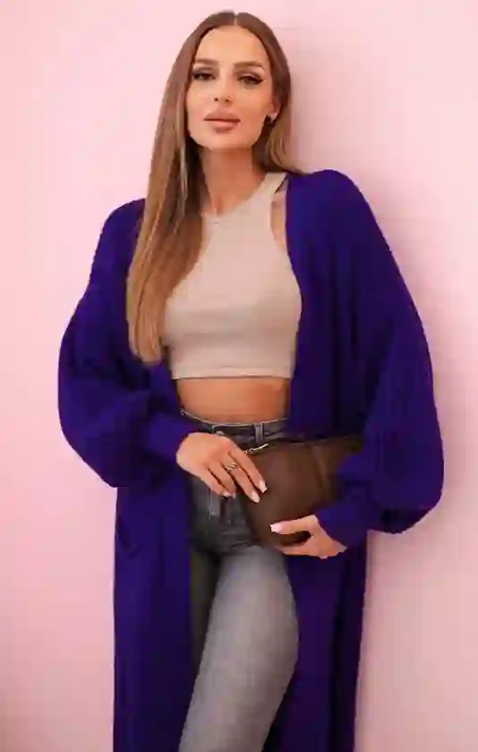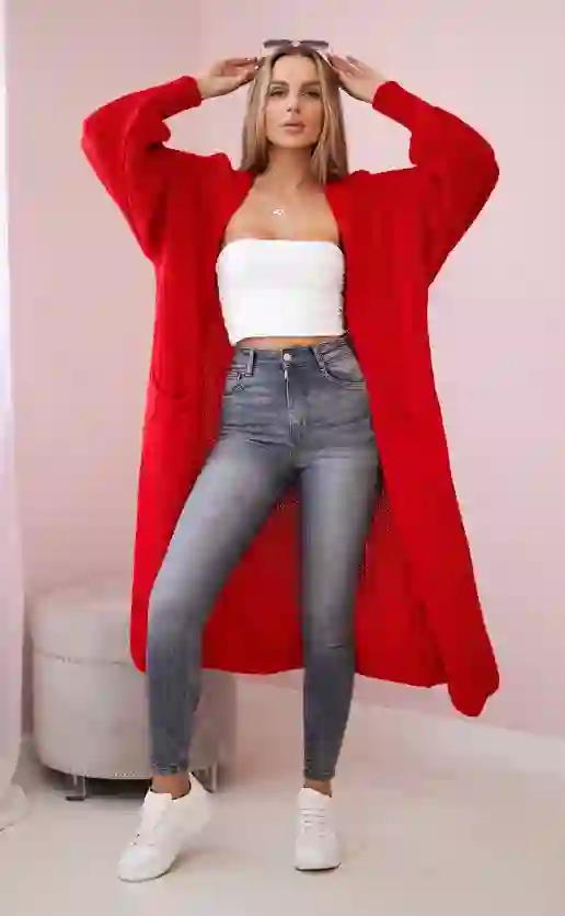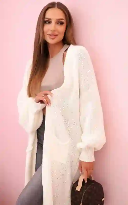 Odkryj idealne połączenie wygody i stylu dzięki naszemu długiemu włoskiemu swetrowi kardiganowi. Wykonany z najwyższej jakości, miękkich i przyjemnych w dotyku włókien, sweter zapewnia wyjątkowy komfort noszenia przez cały dzień. Jego wydłużony fason dodaje elegancji, a jednocześnie zachowuje swobodny, niezobowiązujący charakter, dzięki czemu doskonale sprawdzi się w różnych stylizacjach.