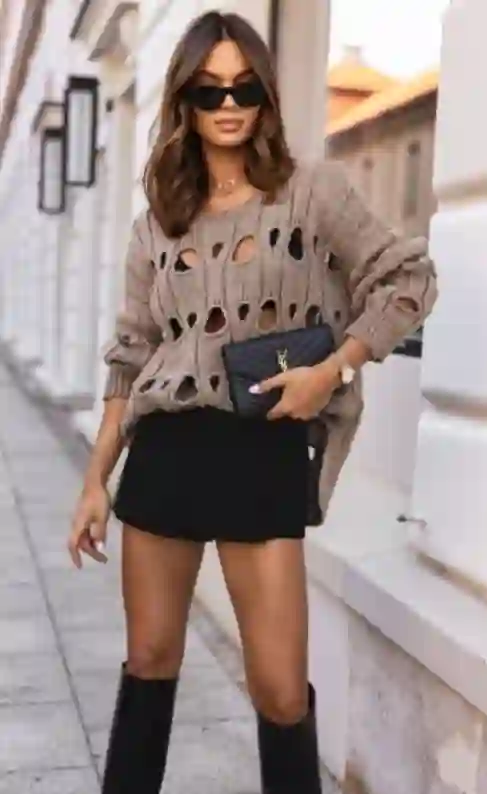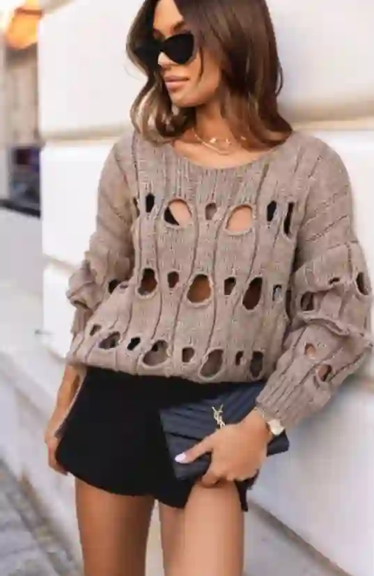 Wyróżnia go duży, dekoracyjny ażur, który dodaje lekkości, subtelnej kobiecości i sprawia, że każda stylizacja wygląda bardziej efektownie. Długie rękawy otulają ciepłem w chłodniejsze dni, a luźny krój gwarantuje pełen komfort i swobodę ruchów – świetnie układa się na każdej sylwetce.