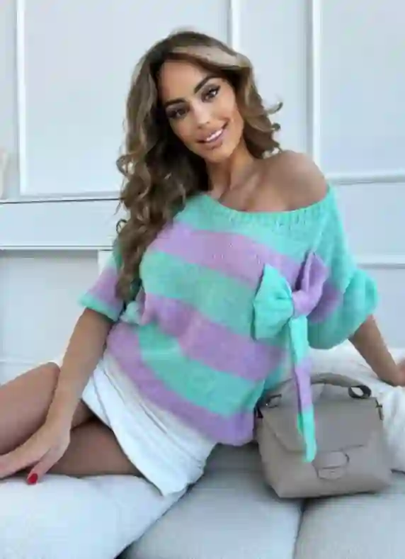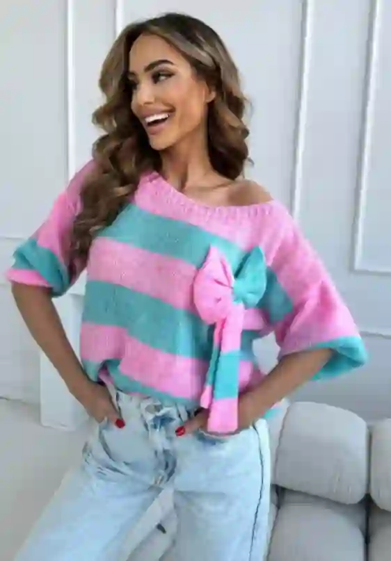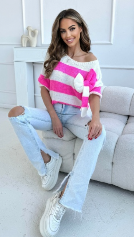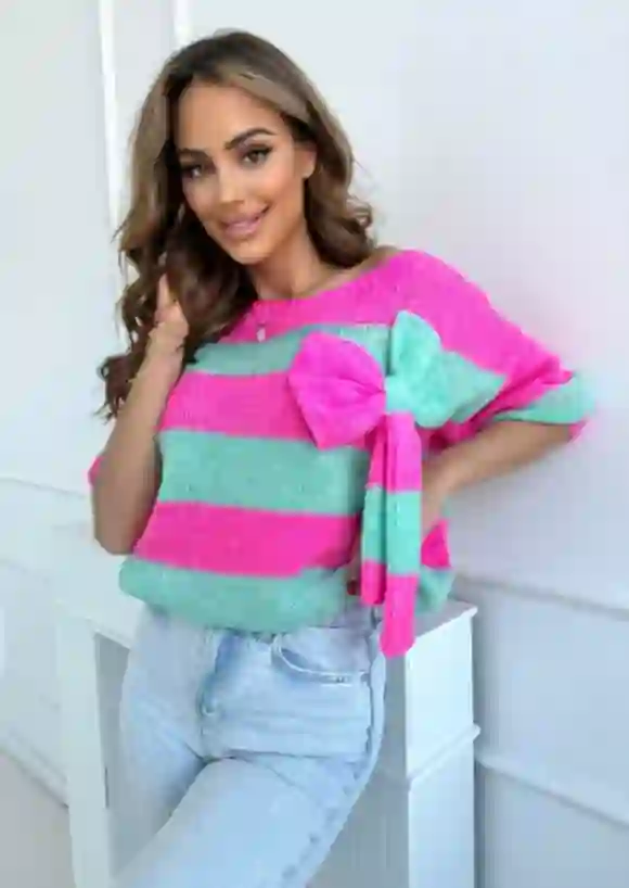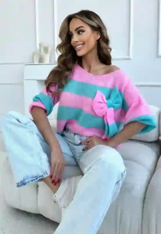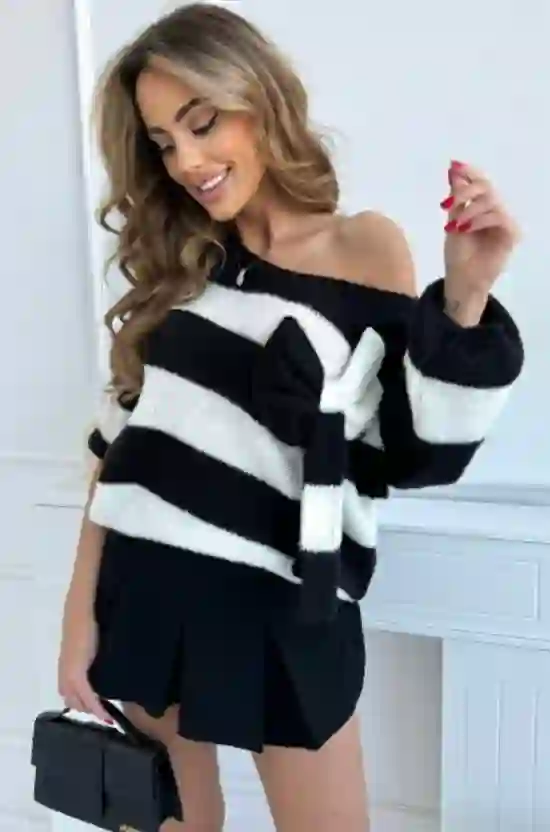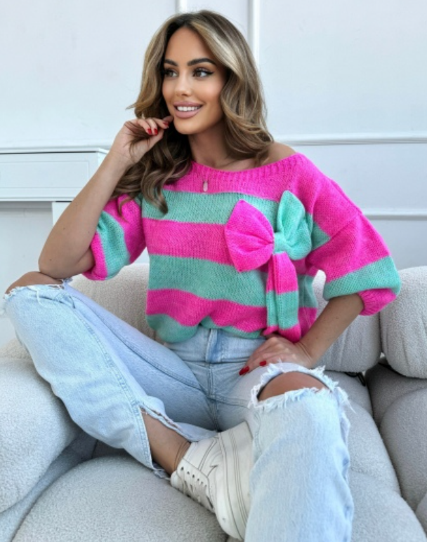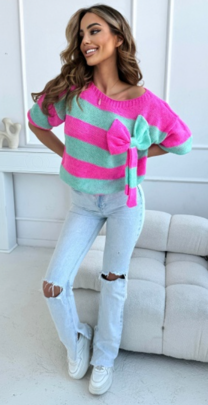 Uroczy sweter w pasy z kokardą Wendy