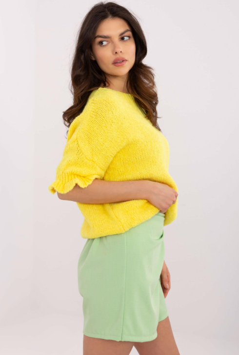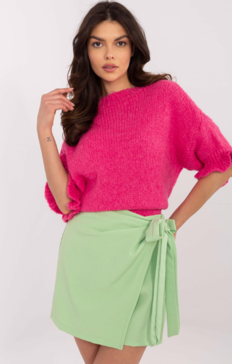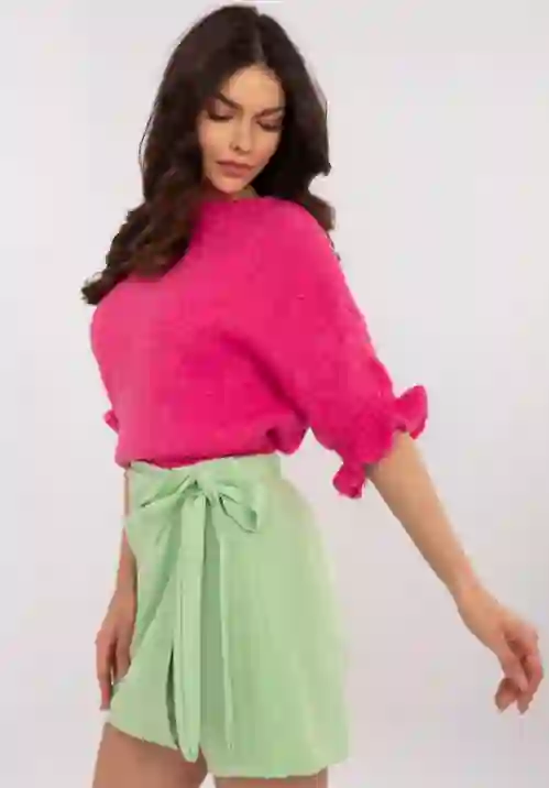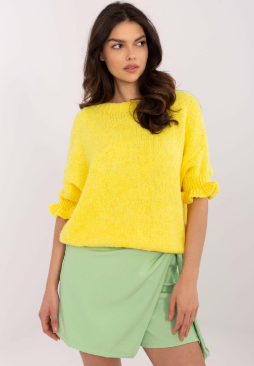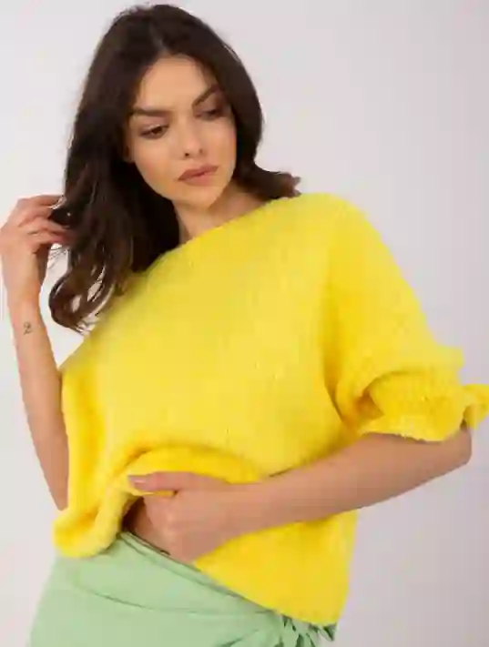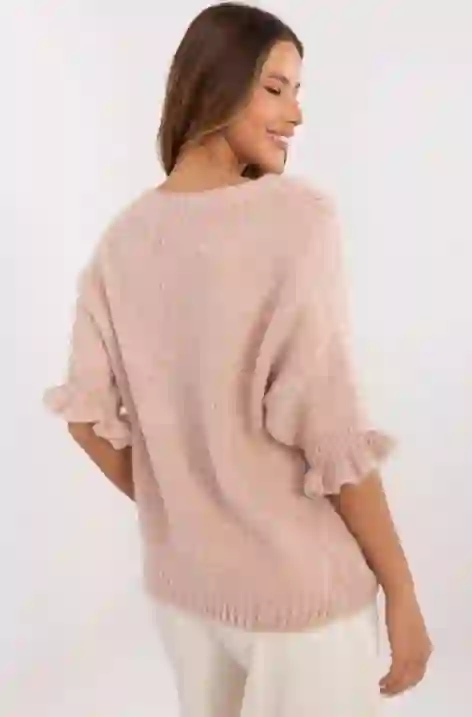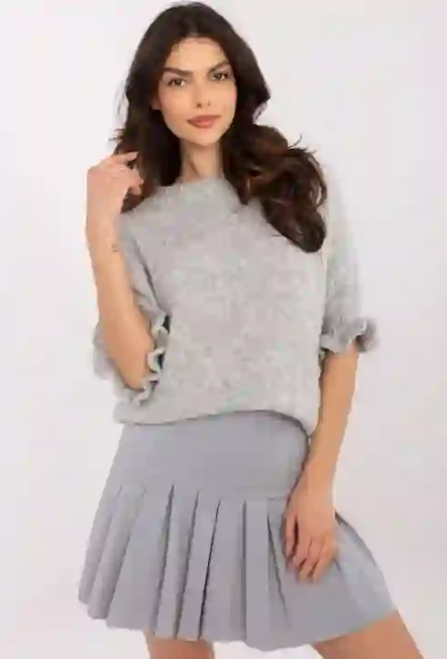 Delikatny, miękki sweter o luźnym kroju, który otuli Cię komfortem i doda romantycznego uroku. Rękawy zakończone subtelną falbanką nadają mu wyjątkowego charakteru, a przyjemna w dotyku dzianina sprawia, że pokochasz go od pierwszego założenia. Dostępny w różnych kolorach – wybierz swój ulubiony!